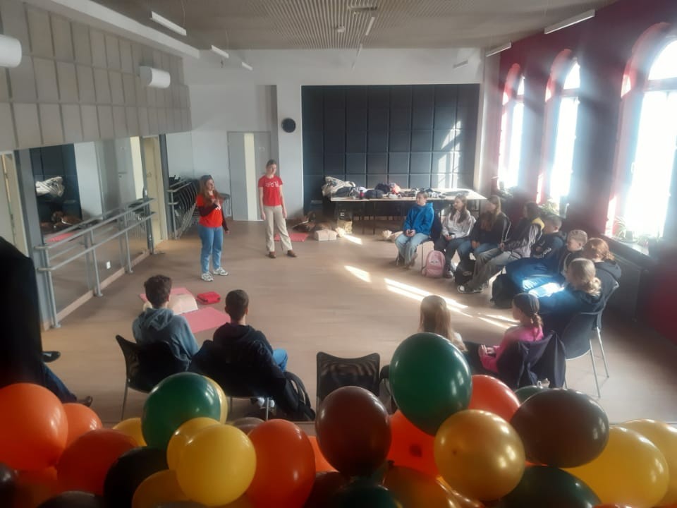 Spotkanie przeprowadziły wykwalifikowane ratowniczki, które w przystępny i angażujący sposób zaprezentowały uczestnikom najważniejsze zasady postępowania w sytuacjach zagrożenia życia i zdrowia. Wśród omawianych zagadnień znalazły się m.in. resuscytacja krążeniowo-oddechowa (RKO), pozycja boczna ustalona, zakrztuszenia.