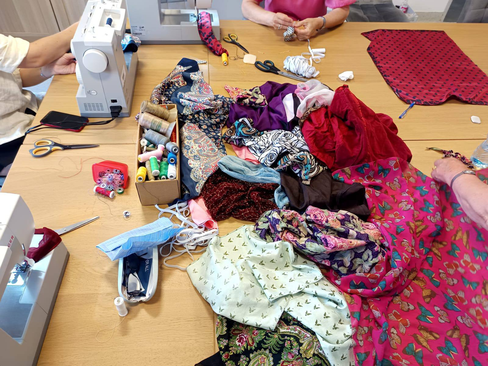 W ramach letnich warsztatów powstały kolorowe gumki do włosów uszyte ze starych apaszek, chust i szalików. Każda z nich była niepowtarzalna – tak samo jak osoby, które je wykonały. To nie tylko praktyczne ozdoby, ale również małe przypomnienie o tym, jak wiele wartości mają rzeczy, które już posiadamy.
