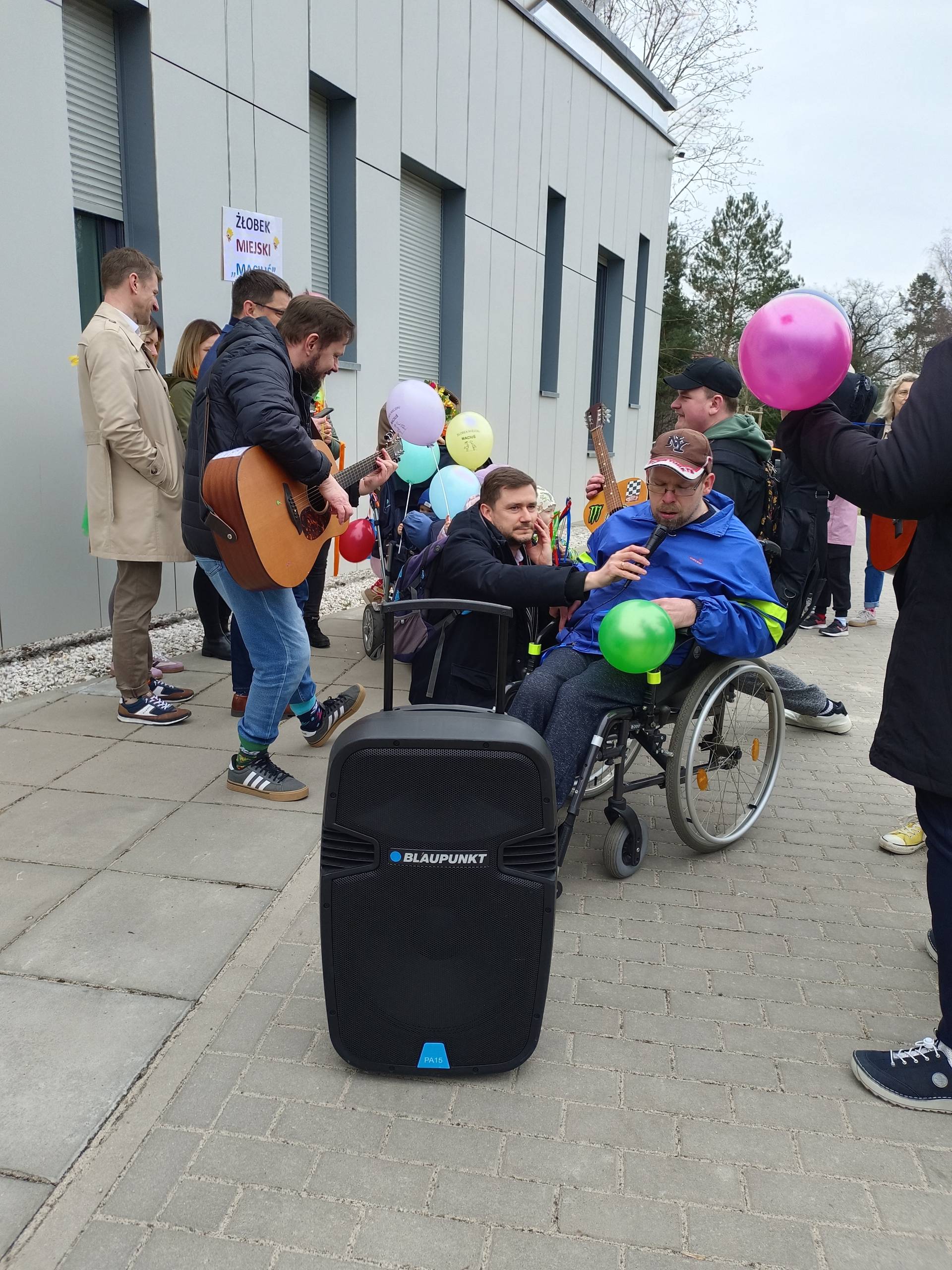 Droga do Integracyjnego Ośrodka Rehabilitacji i Terapii dla Dzieci Niepełnosprawnych przy ulicy Zamkowej wypełniona była radosnym i głośnym śpiewem przy akompaniamencie gitar, uczestnicy nieśli ze sobą kolorowe transparenty, balony i wstążeczki. Przed siedzibą Ośrodka jeden z uczestników, Piotr Śliwiński, zaśpiewał utwór Sound'n'Grace i Filipa Laty pod tytułem „100”.