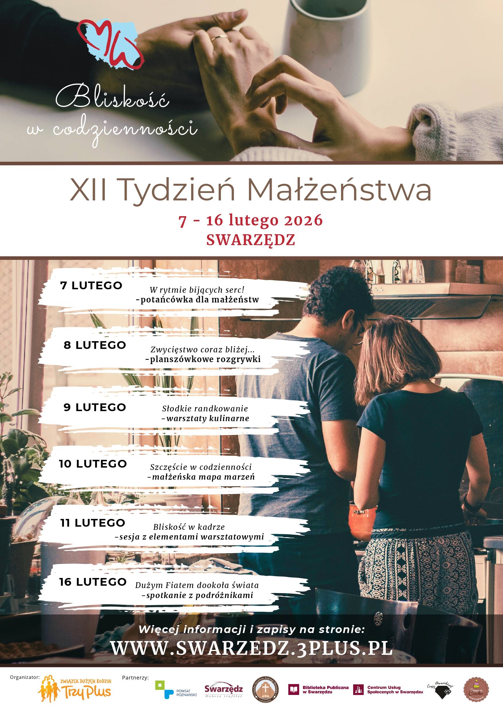 Co roku w tym czasie w wielu miastach w Polsce odbywa się szereg wydarzeń o charakterze edukacyjnym, kulturalnym, rekreacyjnym i rozrywkowym. Także w Swarzędzu przygotowaliśmy wiele zróżnicowanych propozycji małżeńskich randek, które mamy nadzieję będę przestrzenią do wzmocnienia relacji, pogłębiania bliskości, wspólnego wartościowego spędzanie czasu i radości z bycia razem.