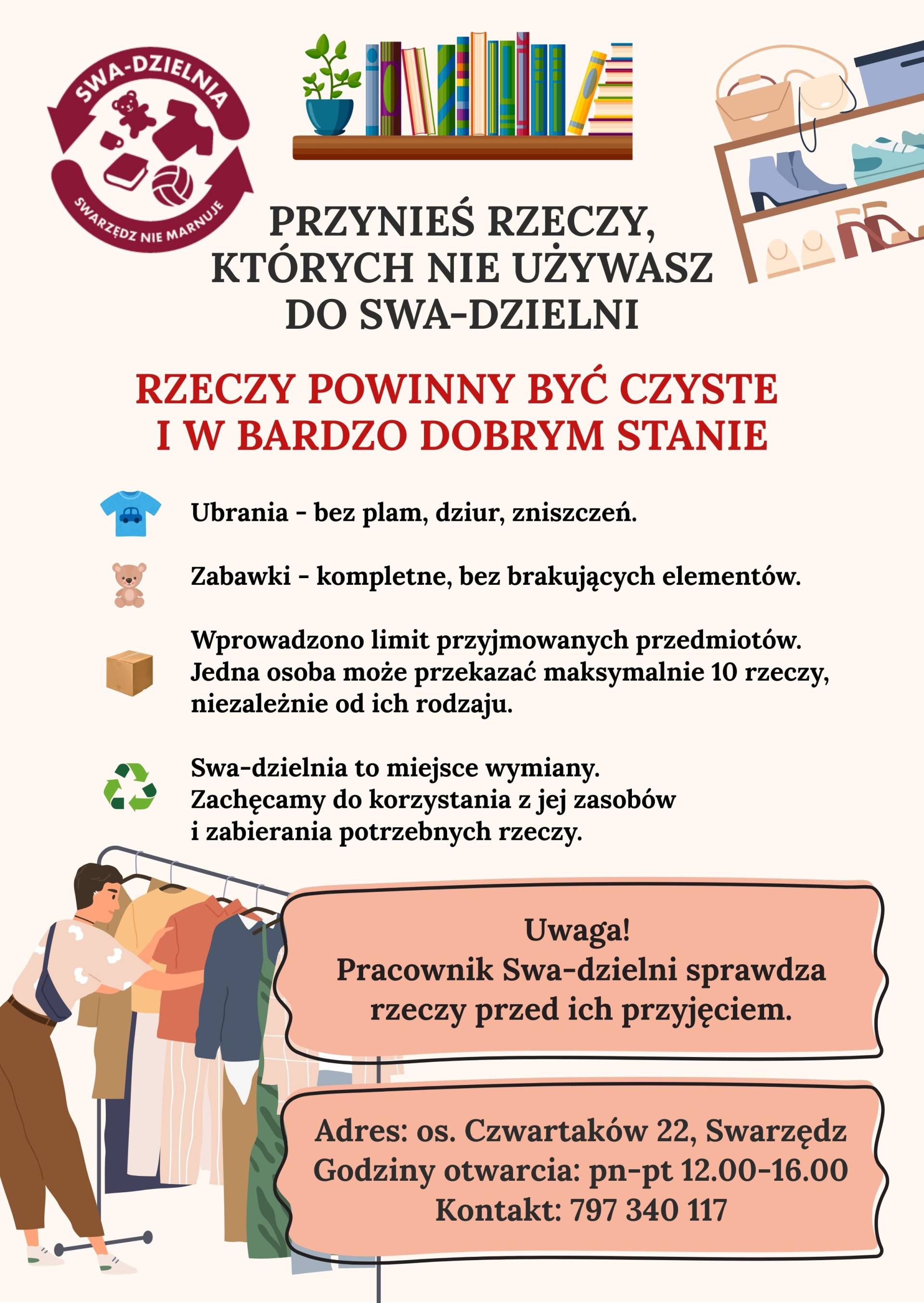 5. Swa-dzielnia to miejsce wymiany. Zachęcamy do korzystania z jej zasobów i zabierania potrzebnych rzeczy.