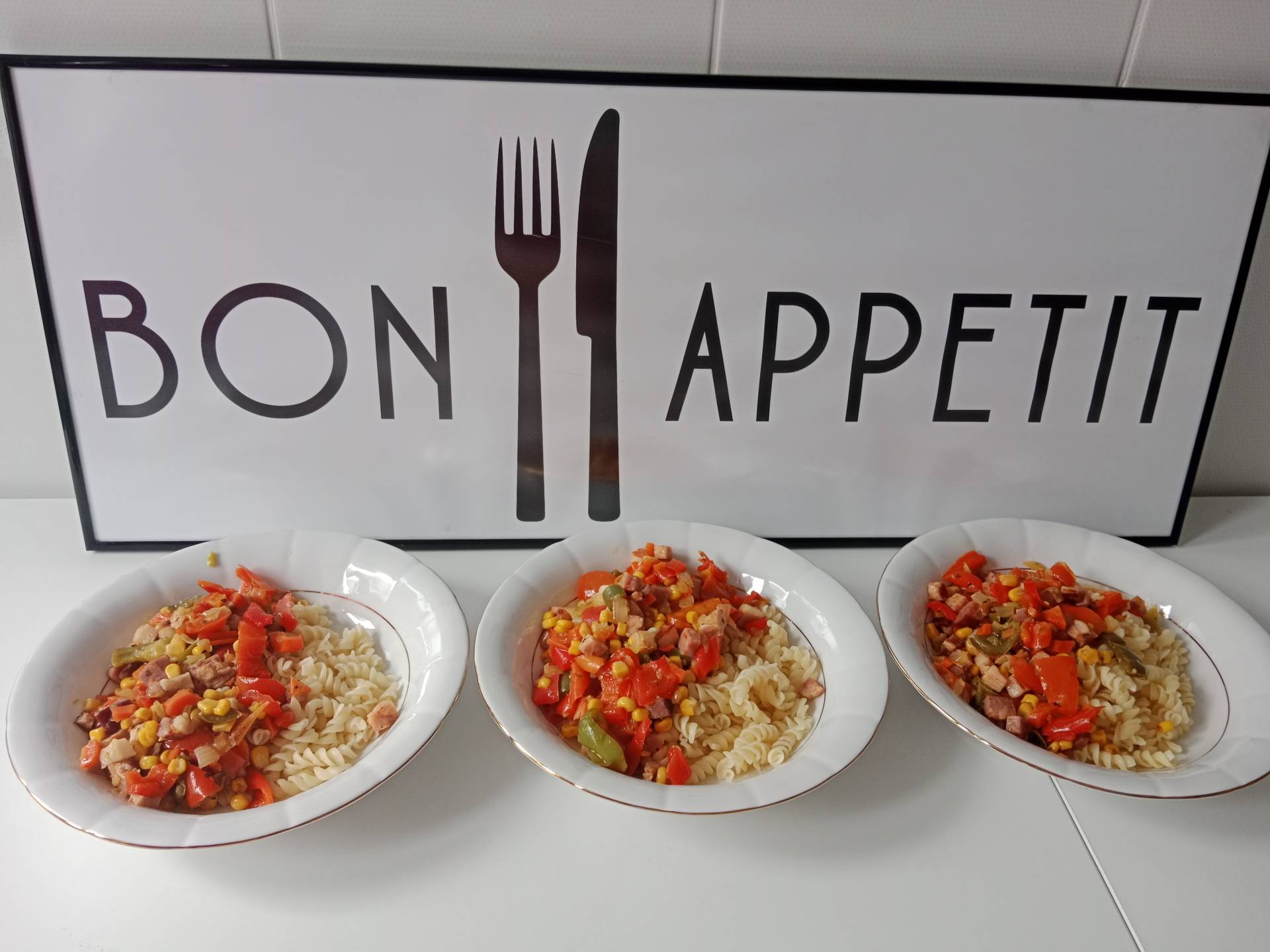 Tym razem na zajęciach kulinarnych przygotowaliśmy makaron z boczkiem i warzywami. Było krojenie, smażenie, gotowanie i oczywiście wspólne próbowanie. Lubimy takie spotkania - proste smaczne danie, dużo rozmów i miło spędzony czas.