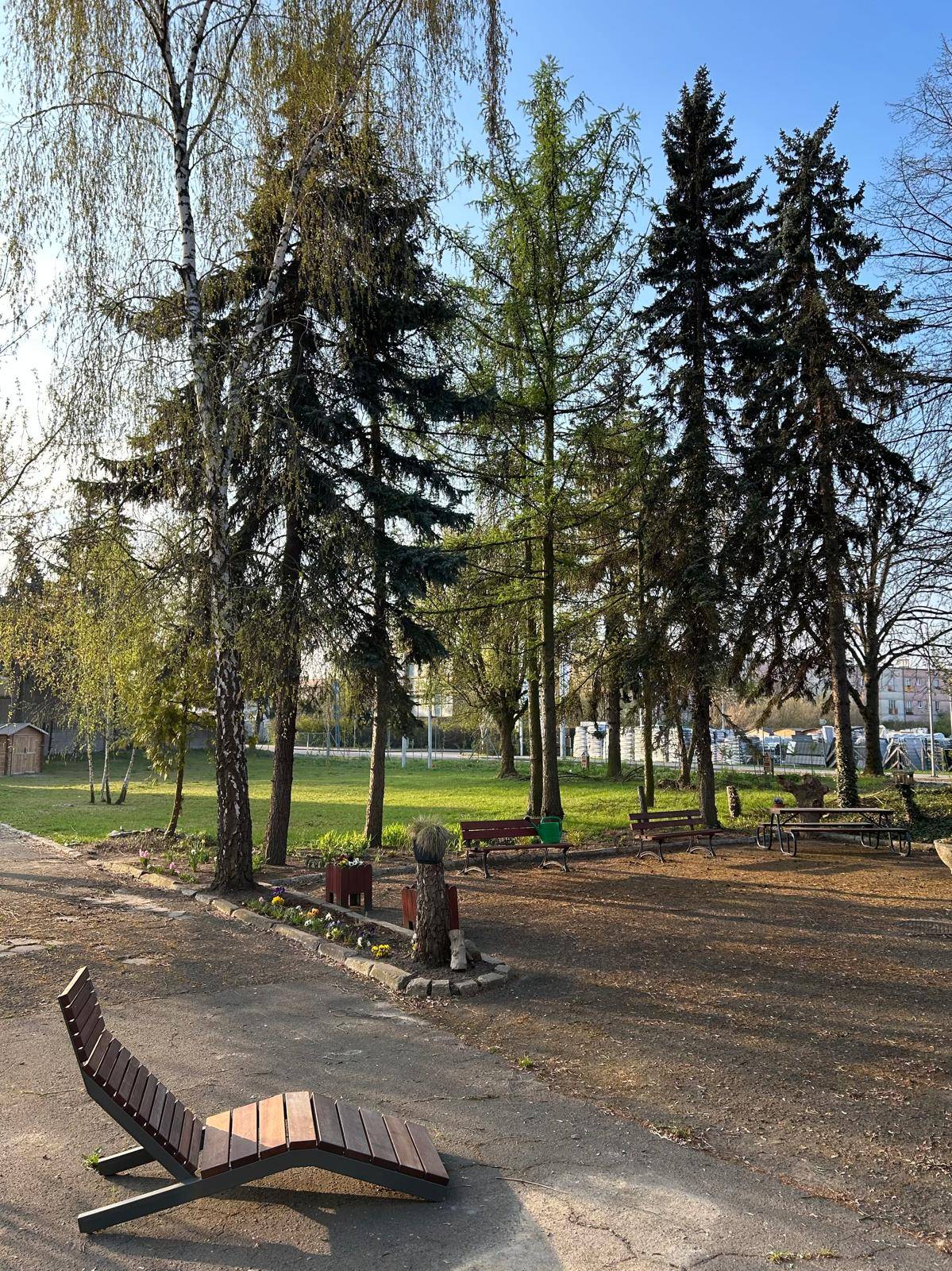 Wiosnę już powoli widać, słychać i czuć. W ogrodzie społecznym obok budynku Centrum Usług Społecznych na drzewach zaczynają rozwijać się listki, a skrzynie zapełniają się świeżymi sadzonkami. Zieleniąca się trawa zachęca, żeby rozłożyć na niej koc, a ławki, by na nich usiąść.